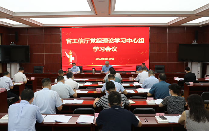 8月10日,省工信廳召開黨組理論學習中心組集體學習會議,廳黨組書記、廳長盛云峰同志主持會議并講話。廳黨組成員、副廳長,一、二級巡視員,駐廳紀檢組,機關各處室(中心)、在蘭廳屬各單位負責人參加會議。